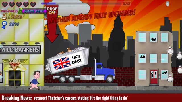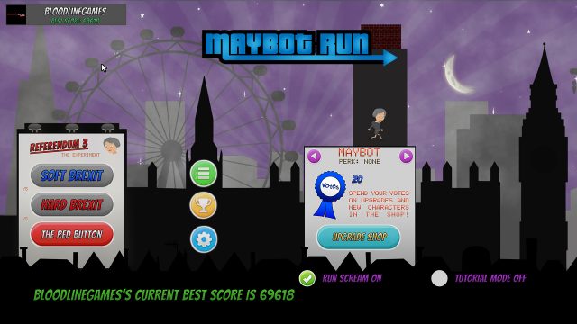 Help Maybot run, jump, slide, and shoot her way to a strong & stable dystopia in this hilarious political infinite runner.